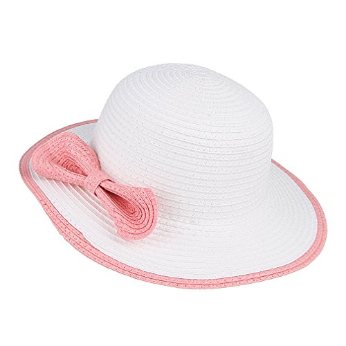C-Princess 可愛い リボン 麦わら帽子 ストローハット ビーチハット 子供 キッズ 女の子 ガールズ用 つば広 日よけ UVカット 紫外線対策 ホワイト
