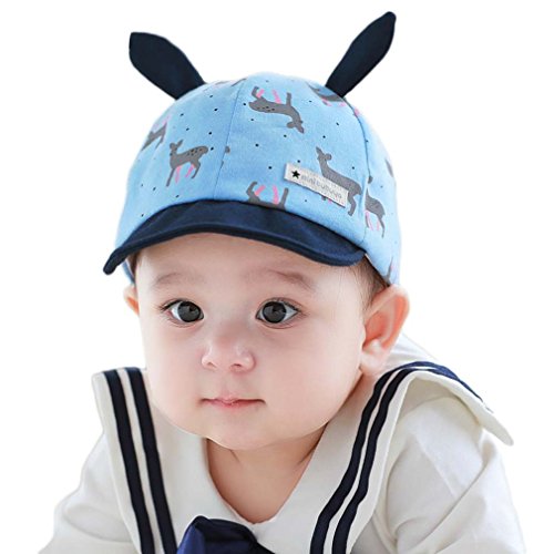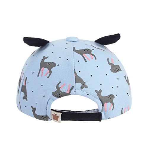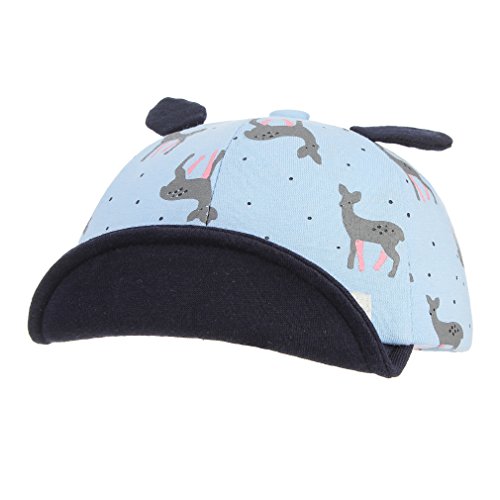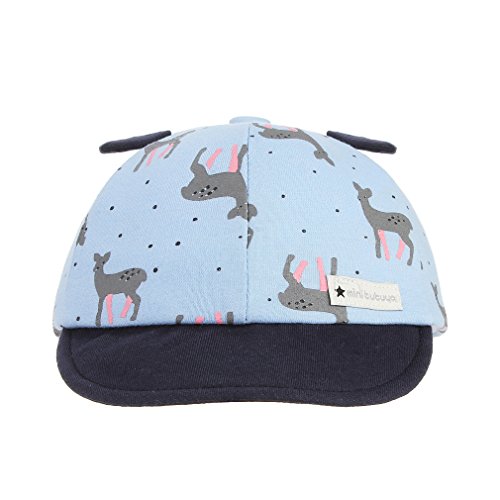 C-Princess 帽子 キャップ 野球帽 鳥打ち帽子 べビー キッズ 子供 男女兼用 女の子 男の子 耳付き 鹿柄 可愛い 綿製 柔らかい お出かけ ブルー S