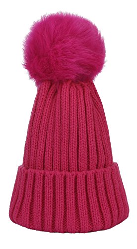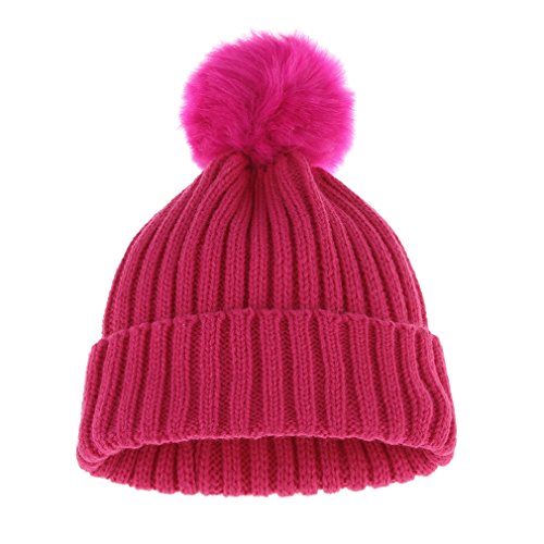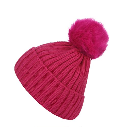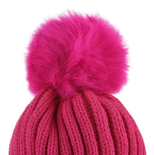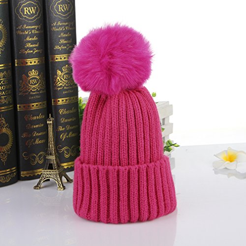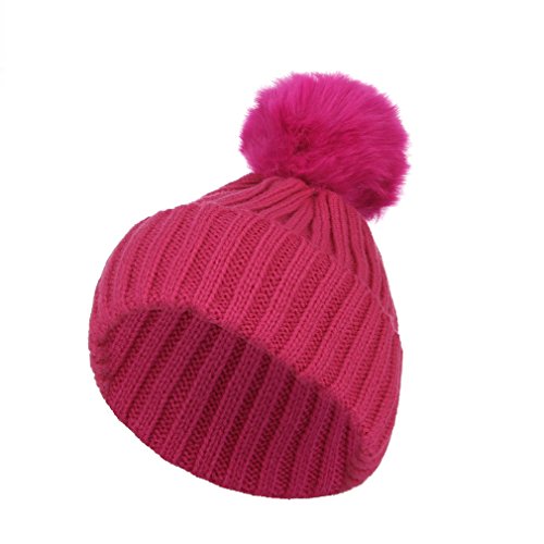 C-Princess 子供 帽子 ニット キャップ ソフト ハット 毛糸帽 ポンポン かわいい ベビー キッズ 幼児 女の子 男の子 秋冬 暖かい 防寒防風 ローズ