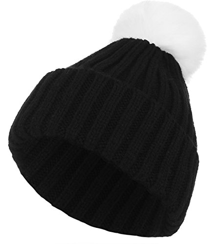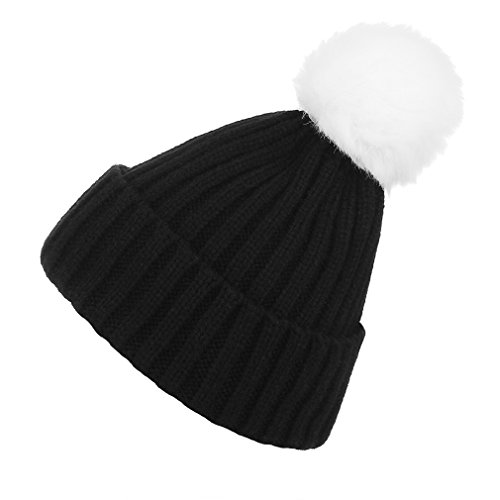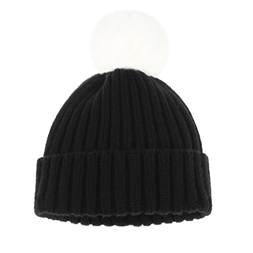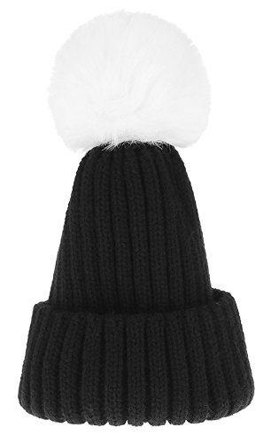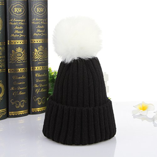 C-Princess 子供 帽子 ニット キャップ ソフト ハット 毛糸帽 ポンポン かわいい ベビー キッズ 幼児 女の子 男の子 秋冬 暖かい 防寒防風 ブラック