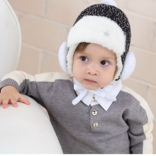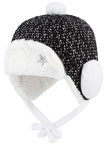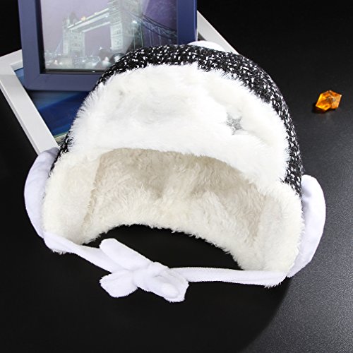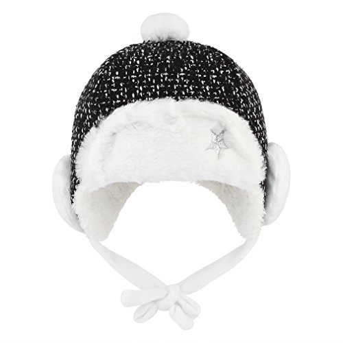 C-Princess 幼児 ベビー 帽子 ニット キャップ パイロット帽子 飛行帽 耳あて付 裏起毛 防寒 防風 子供 キッズ 女の子 男の子 アウトドア ブラック