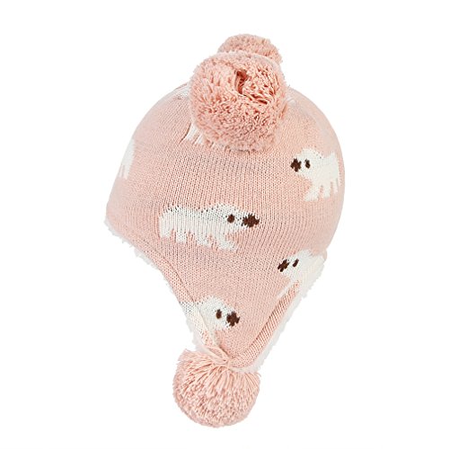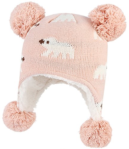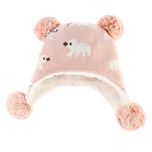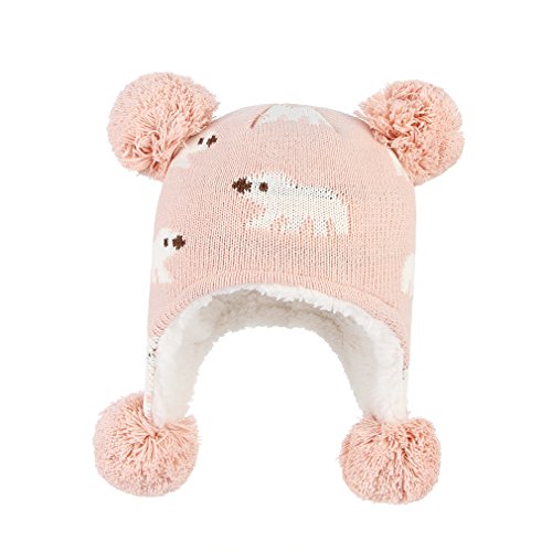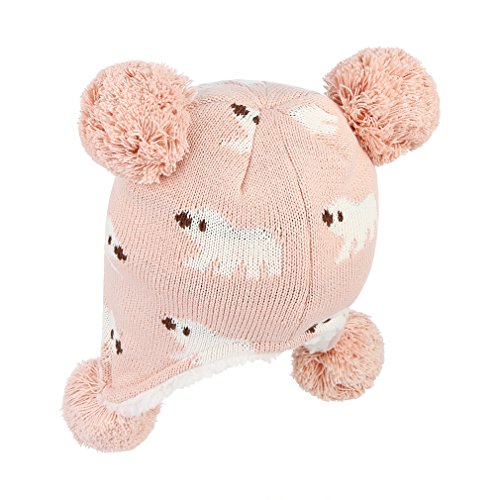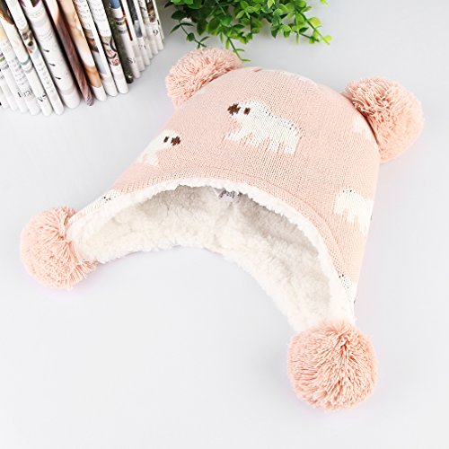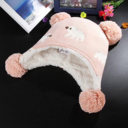 C-Princess ニット帽 耳あて キッズ 子供用 帽子 ベビーハット 赤ちゃん 裏ボア あったか 防寒 男の子 女の子 ポンポン 可愛い 秋冬 (S(44-48), ピンク)