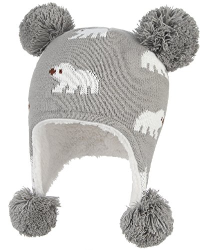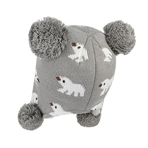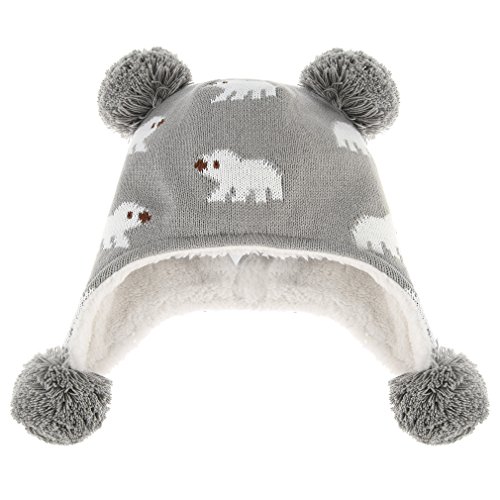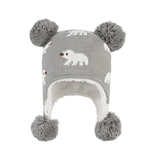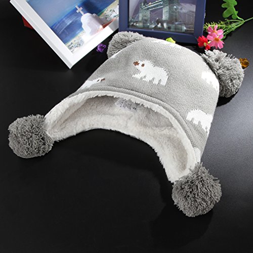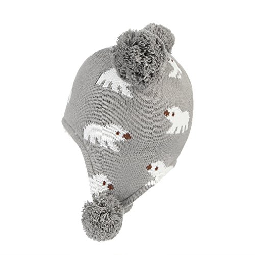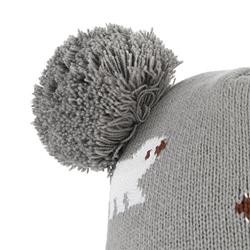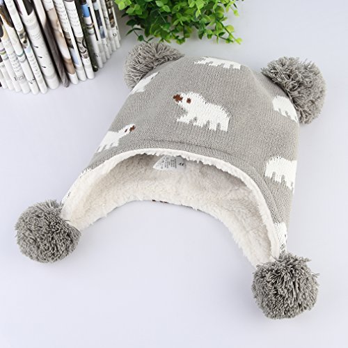 C-Princess ニット帽 耳あて キッズ 子供用 帽子 ベビーハット 赤ちゃん 裏ボア あったか 防寒 男の子 女の子 ポンポン 可愛い 秋冬 (L(52-54), グレー)