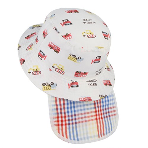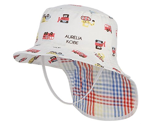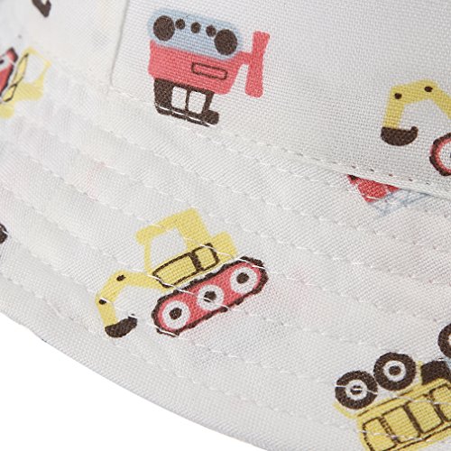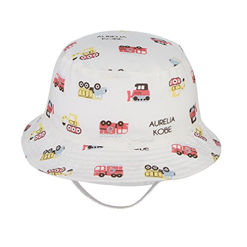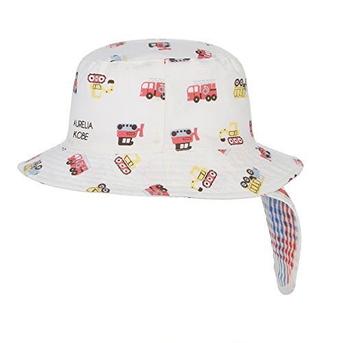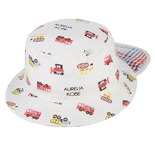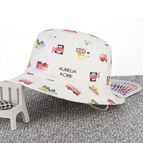 C-Princess キッズ サファリハット 日よけ 帽子 バケットハット つば広い たれ付き あご紐付き 車柄 可愛い ベビー 子ども 男の子 女の子 紫外線対策 海 山登り ホワイト 50cm