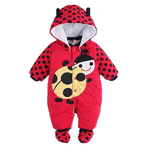 C-Princess 秋冬防寒 足とフード付き ベビー カバーオール アニマル ロンパース 赤ちゃん 動物 着ぐるみ 新生児-1歳ベビー服 女の子 男の子向き子供服 80 テントウムシ柄 赤色