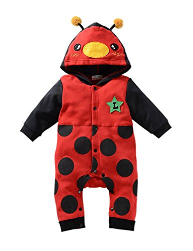 C-Princess ベビー服 女の子 男の子 新生児 秋冬 長袖 あったか 冬 カバーオール 防寒 ロンパース 着ぐるみ キッズ ベビー アウター 赤ちゃん 子供服 出産祝い (95, Bテントウムシ)