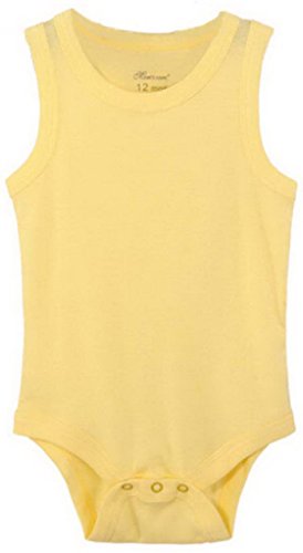 C-Princess ベビー肌着 ボディースーツ ロンパース ノースリーブ シンプル 柔らかい 赤ちゃん 新生児 男の子 女の子 かわいい 出産祝い (66cm, Bイエロー)
