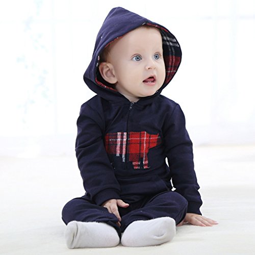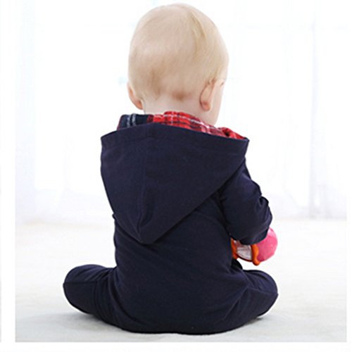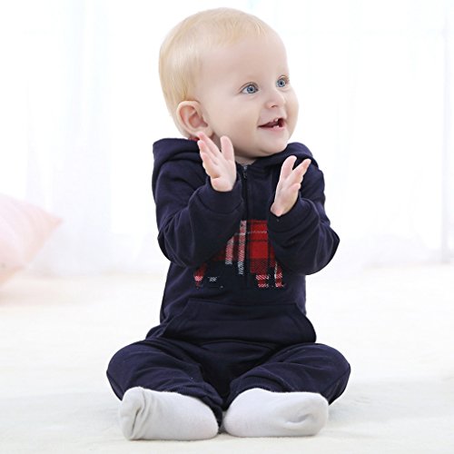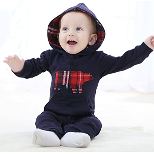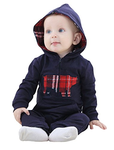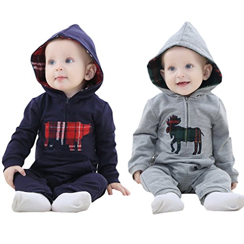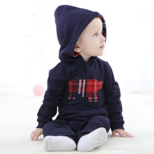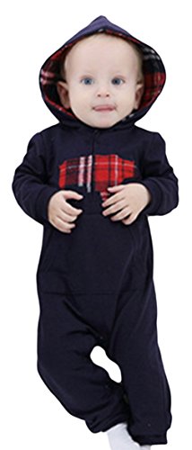 C-Princess 長袖 ロンパース カバーオール ベビー服 赤ちゃん 新生児 男の子 スウェット ボディースーツ ジャンプスーツ フード付 オールインワン ブラック 100