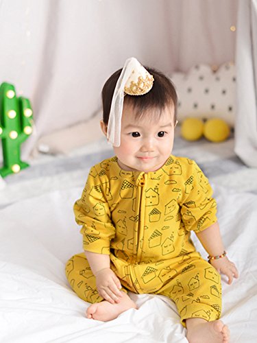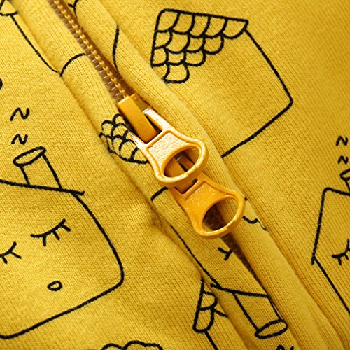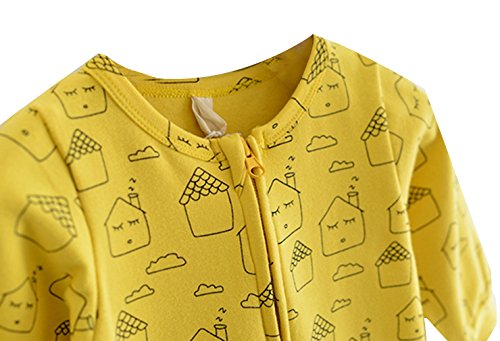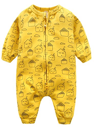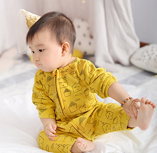 C-Princess 連体服 カバーオール ロンパース 長袖 子供 新生児 ベビー服 ボディスーツ ジッパー ジャンプスーツ 男の子 女の子 可愛い 春 イエロー 90