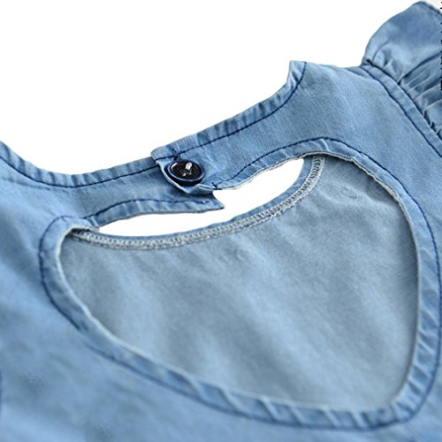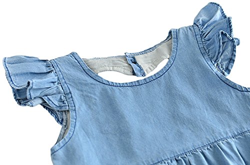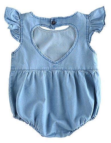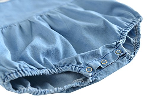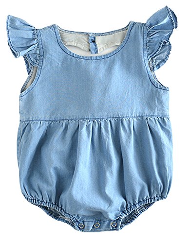C-Princess ベビー デニム 半袖 ロンパース ボディスーツ カバーオール ショートオール 新生児 赤ちゃん 女の子 連体服 肌着 フリル 可愛い ブルー