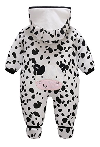 C-Princess ベビー キッズ用 ロンパース カバーオール ジャンプスーツ 着ぐるみ フード付 動物 可愛い 赤ちゃん 子供 防寒着 厚手 前開き 秋冬 乳牛 66