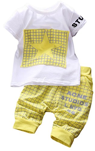C-Princess 半袖 Tシャツ ズボン セットアップ 子供服 幼児 ベビー キッズ 男の子 普段着 カジュアルシャツ ロングパンツ 星柄 可愛い 春夏 イエロー 90