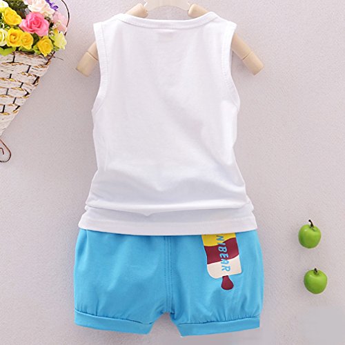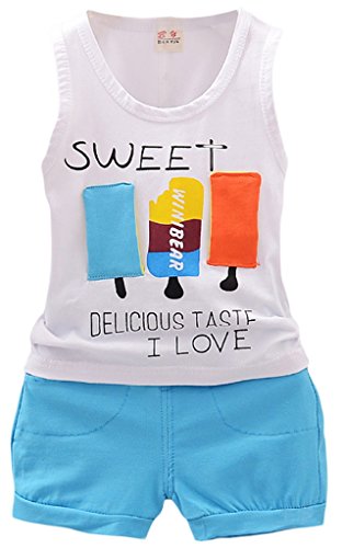 C-Princess ベビー服 男の子 Tシャツ ショートパンツ セットアップ 袖なし タンクトップ 短ズボン 子供 キッズ 赤ちゃん アイスクリーム柄 夏 ブルー 110