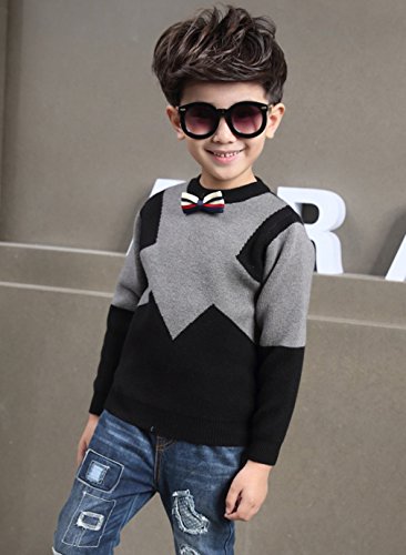 C-Princess 秋冬 男の子 ボーイズ ニット セーター カットソー プルオーバートップス 蝶ネクタイ付き 子供服 キッズ ベビー 男児 かわいい グレー 100