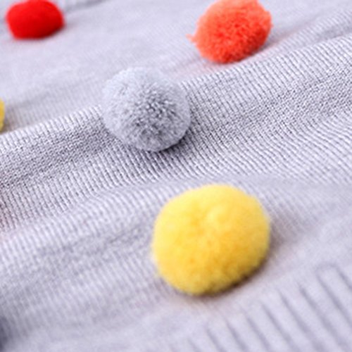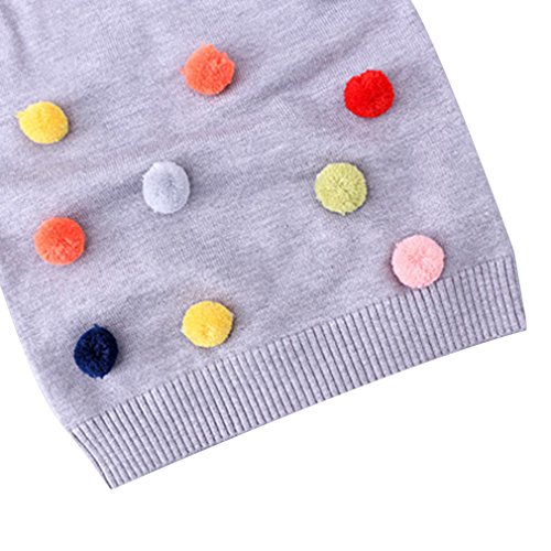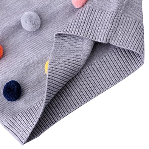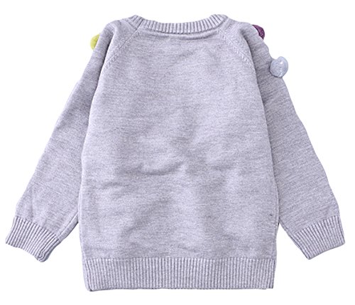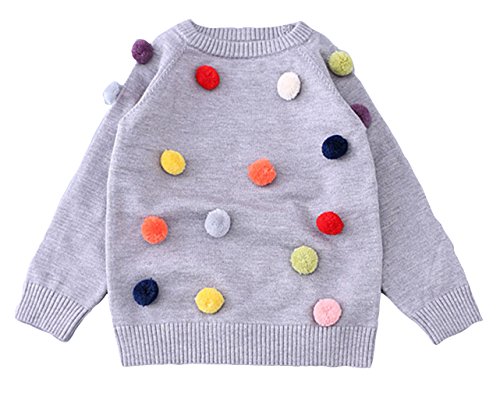 C-Princess ポンポン飾り セーター ニット トップス ベビー服 子ども キッズ 女の子 ジュニア 長袖 かわいい 丸首 秋冬 遊び着 通学 普段着 通園 グレー 100