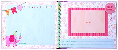 Keepsake book records the first 5 birthdays;Cover measures 10.5 x 8.25-inches;36 Beautifully designed pages featuring Jill McDonald artwork;Pink book is decorated with adorable animals and a photo frame inset on the cover;Gibby & Libby is a colorful world of toys, games and accessories that inspire creativity and learning