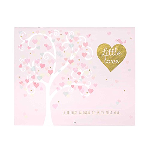 Calendar to record events in baby's first year;Open calendar is 11 x 18-inches;Soft pinks, watercolor hearts, and subtle gold foil accents; acid and lignin-free;Stickers for baby's milestones;C.R. Gibson proudly offers baby gifts for all the phases of baby's life and every milestone along the way