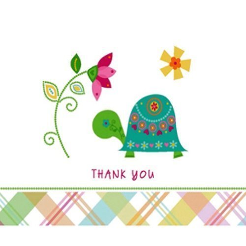 Set of 10 boxed thank you note cards and 10 envelopes, Design features brightly colored cartoon turtle and pastel plaids, Note cards are printed on uncoated vellum finish papers and measure 375" x 5", There are times when only a hand written note will do, and a thank you for the baby gift is one of those times, CR Gibson invented the first baby book in 1898, and since then families around the globe have depended on CR Gibson as their provider of memory books, social books, stationery and photo albums