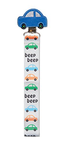 Fun and functional pacifier clip with easy-to-use hook and loop closure secures the pacifier to the clip;Each paci-clip ribbon measures 8.5 long and is 1 wide;Blue multi-layered felt car with embroidery;Sure-grip clip fastens securely to baby's garment;Look to Baby Dumpling by C.R. Gibson for the sweetest gifts to thrill every new mom