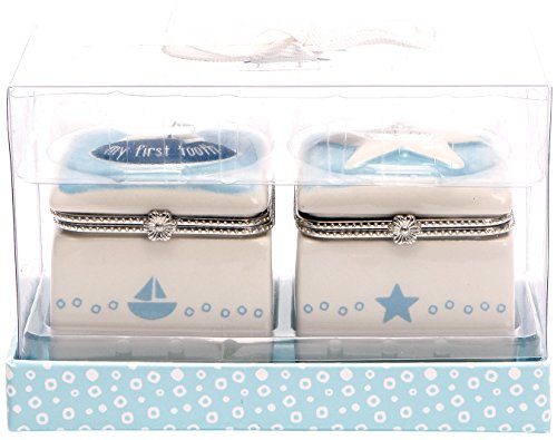 - C.R. Gibson Ceramic First Tooth and Curl Keepsake Box, Sailboat and Star