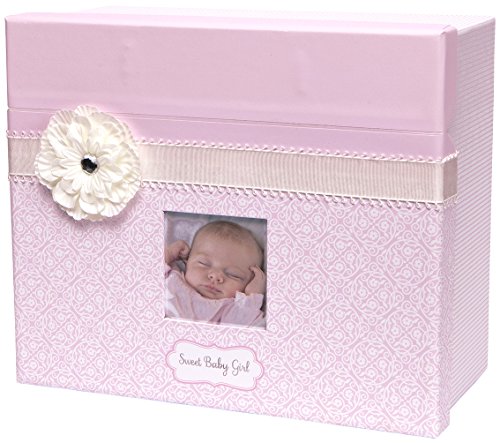 Keepsake chest to store first lock of hair, first spoon, birth certificate, birth announcement, and special photographs, Chest is approximately 12.5 x 10.25 x 6-inches, Top compartment large enough to hold a B2 memory book, Acid and lignin-free, C.R. Gibson has been preserving family memories for 140 years, and no memory is as special as that of our children