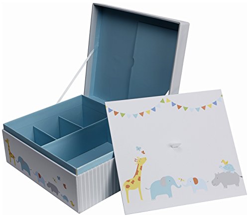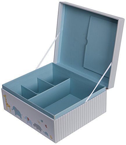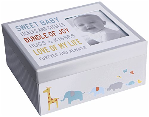 Keepsake box with photo opening on lid to personalize with baby's photo;Measures approximately 10.5 x 9.25 x 4.5-inches;Top compartment large enough to hold Little Memories Book of Firsts;Lift-out tray reveals multiple spaces for smaller keepsakes;C.R. Gibson has been preserving family memories for 140 years, and no memory is as special as that of our children