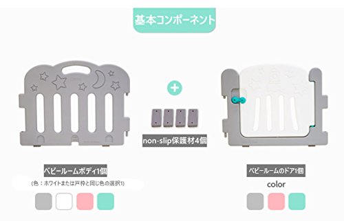 - ★Caraz(カラズ) Baby Guard Door Set / Baby Room Set 6P ★製造国 : 韓国 ★対象 : 3ヶ月以上 ★素材:PE / PP ★本体サイズ - パネル1枚:W76×D3.5×H60cm / 8枚インストール時サイズ(正方形)-148×148×60cm ★ドアカラー: グレー、ミント、ピンク / ベビールームカラー: ホワイト、グレー、ミント、ピンク