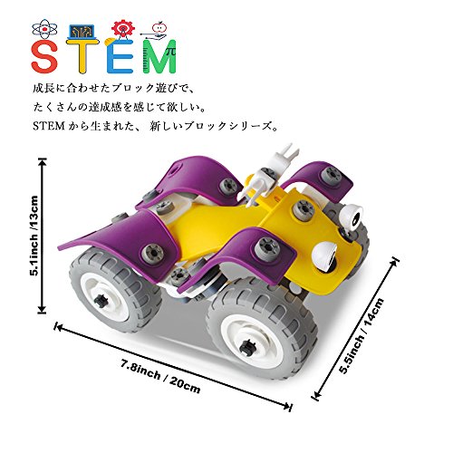 この教育エンジニアリング玩具は100個の高品質パーツもあって、全部が丈夫で柔軟で色も鮮やかです。さらに、パーツが互いにスナップフィットするので、モデルを組み立てた後遊んでも外れません。レースカー、オフロードバイク、ヘリコプター、戦闘機等のモデルを4種類以上作れます。