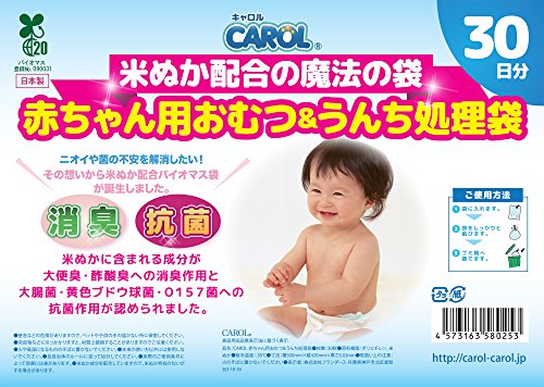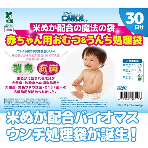 CAROL米ぬか配合バイオマスおむつ処理袋。消臭・抗菌のWパワー!クサイ・汚いを解消!!赤ちゃんのオムツ処理に最適! おむつポットを購入前に是非1度お試しください。