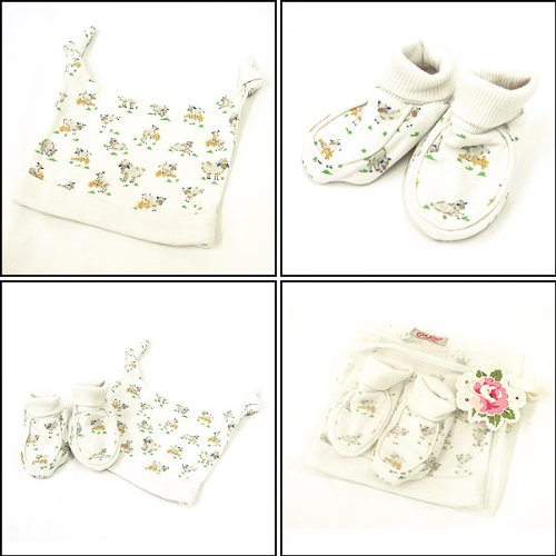 可愛いプリントが魅力のキャスキッドソンの登場です!! おしゃれな人たちのあいだで話題のイギリスのファブリックブランド。 新生児用(0~3ヶ月)のハットと靴下の2点セットが可愛いオーガンジーの袋に入ったギフトセット。プレゼントとしても喜ばれるアイテムです。 <BR><BR> 生地の裁断箇所が1点1点異なるため、画像と柄が異なります。上記理由による返品や絵柄等の指定はお受けいたしかねますので予めご了承ください。 <BR><BR>