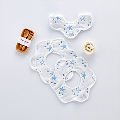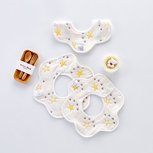 AKC ベビー スタイ 360度回転 ビブ よだれかけ 防水加工 サイズ調節可能 スナップ 5層厚さ 柔らかい 4枚セット (ほし)