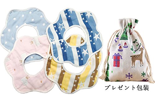 iWheat 6層ガーゼ 綿100% ベビー ビブ よだれかけ スタイ 360度回転 花びら型 食事用 出産のお祝いギフト 柔らかい 男女共用 6枚