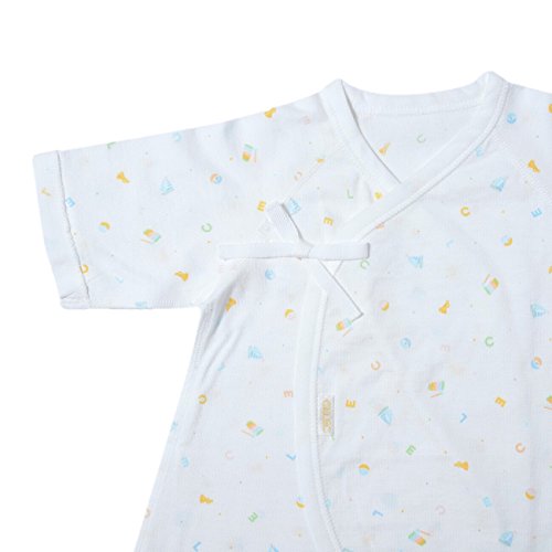 新生児の肌はデリケートなので肌の乾燥やムレを防ぐために肌着を着せてあげてください。 赤ちゃんは体温調節機能が未発達なので、上手に体温調節ができないので肌着には体温を調節する役割があります。 また、汗で体を冷やしてしまわないよう吸収性がよく、デリケートな肌に直接触れるので、素材の柔らかさや縫製の仕方など安全な物作りが大切です。 CELECの肌着は肌にやさしく安全で、素材の柔らかさを追求した上質な綿、汗をいっぱいかいても安心できる吸収性、寒さを予防できる保温性、洗濯の耐久性を高めています。 また日本製であるのはもちろんのこと織り・編みから染色、縫製まで全ての工程を日本で行っています。 CELECのロゴやヨット、ラッパなどがプリントされたカラフルでとてもキュートな肌着です。 天竺編地は吸汗性・吸湿性に富み、オールシーズン着せられます。 高級綿の60/2番手天竺編地なので手触りはなめらかで艶があり、繰り返しの洗濯による型崩れや毛羽立ちが少ないです。 深い打ち合わせで元気よく動いてもはだけにくく、紐使いで脱ぎ着もさせやすいです。 内股をスナップで留めれば、元気に足を動かしても裾がはだけにくくなります。 縫製は赤ちゃんのデリケートな肌を守るため、縫い代のごろつきをなくし、縫い目を表側にしています。 ・縫い目がごろつかない特殊なミシンを使っています。 ・縫い目を表面にして直接肌に触れないようにしています。 ・縁取りテープの厚みにこだわり、どの体勢でも肌を傷めないように考えています。 ・表示ラベルについても肌に直接触れない配慮をしています。