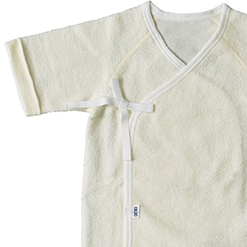 新生児の肌はデリケートなので肌の乾燥やムレを防ぐために肌着を着せてあげてください。 赤ちゃんは体温調節機能が未発達なので、上手に体温調節ができないので肌着には体温を調節する役割があります。 また、汗で体を冷やしてしまわないよう吸収性がよく、デリケートな肌に直接触れるので、素材の柔らかさや縫製の仕方など安全な物作りが大切です。 CELECの肌着は肌にやさしく安全で、素材の柔らかさを追求した上質な綿、汗をいっぱいかいても安心できる吸収性、寒さを予防できる保温性、洗濯の耐久性を高めています。 また日本製であるのはもちろんのこと織り・編みから染色、縫製まで全ての工程を日本で行っています。 綿繊維を撚らずに紡績しているので、ソフトでふくらみがあるパイル編地となっています。 保温性、吸収性に優れており、寒い冬、暑い夏にも重宝する肌着です。 洗濯による型崩れも少なく、ソフト感は変わりません。 深い打ち合わせで元気よく動いてもはだけにくく、紐使いで脱ぎ着もさせやすいです。 縫製は赤ちゃんのデリケートな肌を守るため、縫い代のごろつきをなくし、縫い目を表側にしています。 ・縫い目がごろつかない特殊なミシンを使っています。 ・縫い目を表面にして直接肌に触れないようにしています。 ・縁取りテープの厚みにこだわり、どの体勢でも肌を傷めないように考えています。 ・表示ラベルについても肌に直接触れない配慮をしています。
