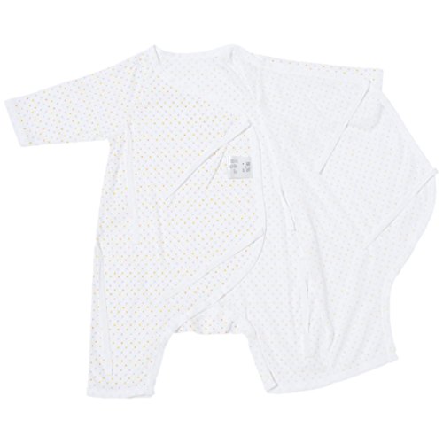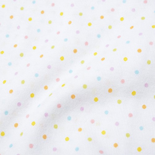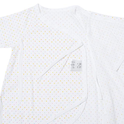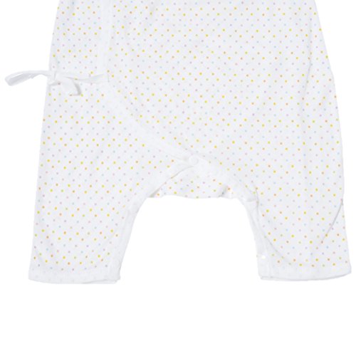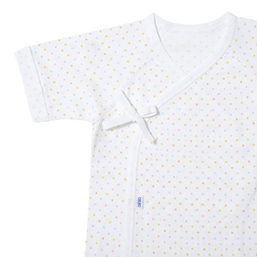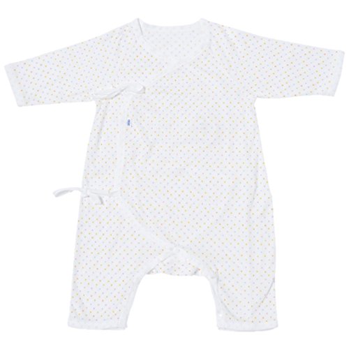 新生児の肌はデリケートなので肌の乾燥やムレを防ぐために肌着を着せてあげてください。 赤ちゃんは体温調節機能が未発達なので、上手に体温調節ができないので肌着には体温を調節する役割があります。 また、汗で体を冷やしてしまわないよう吸収性がよく、デリケートな肌に直接触れるので、素材の柔らかさや縫製の仕方など安全な物作りが大切です。 CELECの肌着は肌にやさしく安全で、素材の柔らかさを追求した上質な綿、汗をいっぱいかいても安心できる吸収性、寒さを予防できる保温性、洗濯の耐久性を高めています。 また日本製であるのはもちろんのこと織り・編みから染色、縫製まで全ての工程を日本で行っています。 フライス編地にカラフルなドット柄のプリントを施し、可愛さを表現した肌着です。フライス編地は肌着の定番商品で、吸収性、吸湿性があり、オールシーズン着せられます。 高級エジプト綿を使っているので滑らかな手触りで、繰り返しの洗濯による型崩れや毛羽立ちも少ないです。 深い打ち合わせで元気よく動いてもはだけにくく、紐使いで脱ぎ着もさせやすいです。 股ぐりが立体的になっていて、ほどよいフィット感もあり、カバーオールなどのインナーとしても便利です。 縫製は赤ちゃんのデリケートな肌を守るため、縫い代のごろつきをなくし、縫い目を表側にしています。 ・縫い目がごろつかない特殊なミシンを使っています。 ・縫い目を表面にして直接肌に触れないようにしています。 ・縁取りテープの厚みにこだわり、どの体勢でも肌を傷めないように考えています。 ・表示ラベルについても肌に直接触れない配慮をしています。