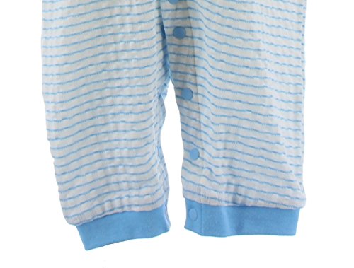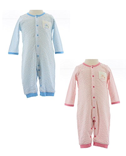 見た目も素材も涼しくて爽やかなボディオールです。 前開きなのでお着替えもしやすくまた内股のスナップボタンを外すだけでおむつ替えができます。 サッカー織物生地の凹凸をニットの変形編みで作っています。 凹凸があるので肌に密着せず、汗吸性が高いので爽やかな着心地です。 白地に先染めの細ボーダー柄は上品で愛らしさを表現しています。 くまさんが積み木遊びしている刺繍がとてもキュートです。