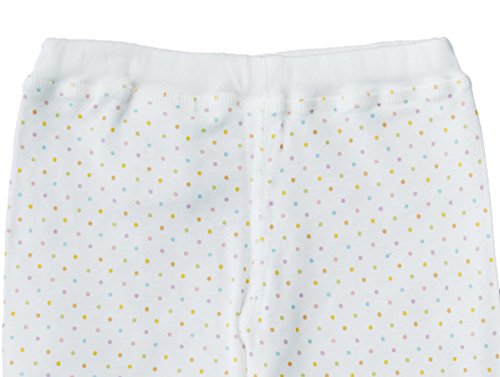 新生児の肌はデリケートなので肌の乾燥やムレを防ぐために肌着を着せてあげてください。 赤ちゃんは体温調節機能が未発達なので、上手に体温調節ができないので肌着には体温を調節する役割があります。 また、汗で体を冷やしてしまわないよう吸収性がよく、デリケートな肌に直接触れるので、素材の柔らかさや縫製の仕方など安全な物作りが大切です。 CELECの肌着は肌にやさしく安全で、素材の柔らかさを追求した上質な綿、汗をいっぱいかいても安心できる吸収性、寒さを予防できる保温性、洗濯の耐久性を高めています。 また日本製であるのはもちろんのこと織り・編みから染色、縫製まで全ての工程を日本で行っています。 フライス編地にカラフルなドット柄のプリントを施し、可愛さを表現した肌着です。フライス編地は肌着の定番商品で、吸収性、吸湿性があり、オールシーズン着せられます。 高級エジプト綿を使っているので滑らかな手触りで、繰り返しの洗濯による型崩れや毛羽立ちも少ないです。 お腹や足の防寒対策としてはもちろん、パジャマのズボンとしてもお使いいただけます。 縫製は赤ちゃんのデリケートな肌を守るため、縫い代のごろつきをなくし、縫い目を表側にしています。 ・縫い目がごろつかない特殊なミシンを使っています。 ・縫い目を表面にして直接肌に触れないようにしています。 ・縁取りテープの厚みにこだわり、どの体勢でも肌を傷めないように考えています。 ・表示ラベルについても肌に直接触れない配慮をしています。