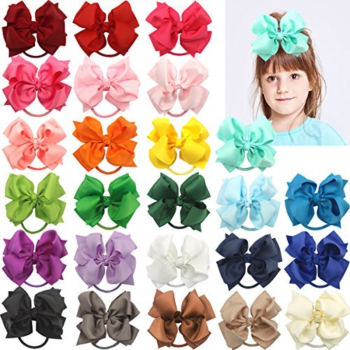 25Pcs Boutique Girls Kids Children 4" Double Layer Grosgrain Ribbon Hair Bows Headbands Elastic Band Pigtail Holder Rubber Tie