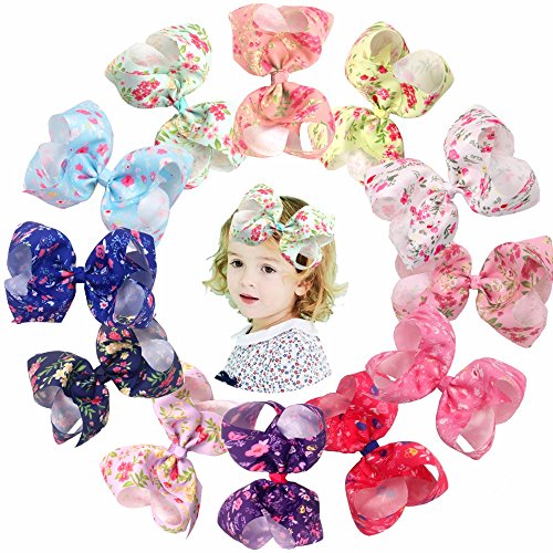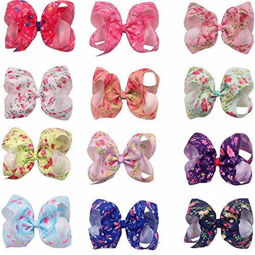 12pcs大きなリボンBig春の花ヘアクリップリボンワニクリップfor Baby Girls Teenager