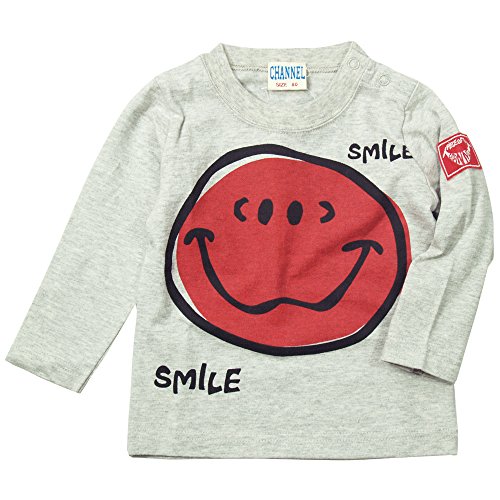 《H28秋冬物》 CHANNEL(チャンネル) 天竺こまったニコチャン長袖Tシャツ 90cm /杢グレー NO.CN-6409