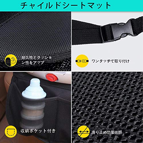 - 【収納力アップ】チャイルドシートマットのボトムとキックガードの両方とも収納ポケットが付き、ペットボトルや哺乳瓶、スマホなどの小物を収納し、車のシートをスッキリします。