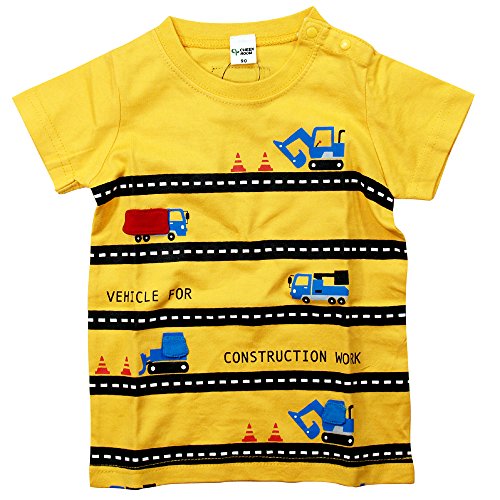 《春夏対応》 CHEEK ROOM(チイクルーム) 製品洗い加工済み42/2天竺はたらく車半袖Tシャツ 90cm /YE NO.B-470103