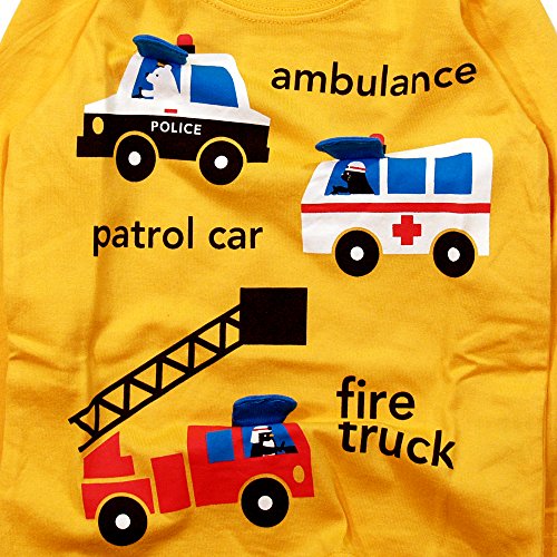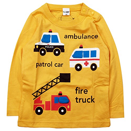 《春夏対応》 CHEEK ROOM(チイクルーム) 製品洗い加工済み42/2天竺はたらく車長袖Tシャツ 80cm /YE NO.B-470209