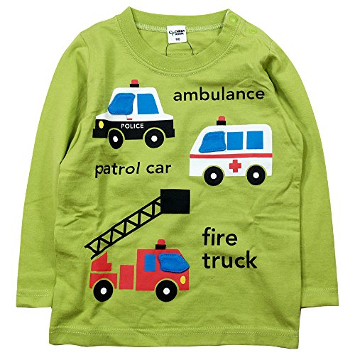 《春夏対応》 CHEEK ROOM(チイクルーム) 製品洗い加工済み42/2天竺はたらく車長袖Tシャツ 110cm /GN NO.B-470209