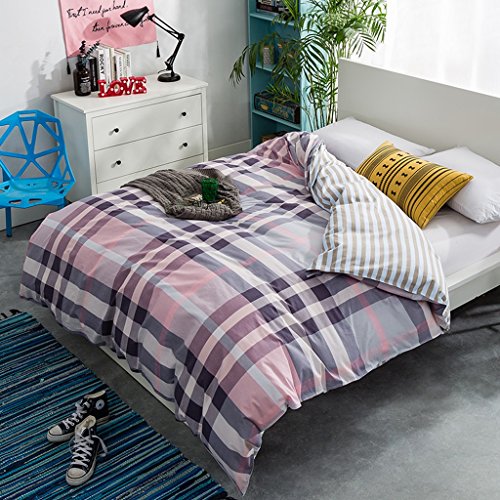 CHENGYI グレーピンクのストライプの格子パターンコットンシングル学生キルトカバーシングルピースホーム漫画ダブルキルトカバー ( サイズ さいず : 180*220cm )