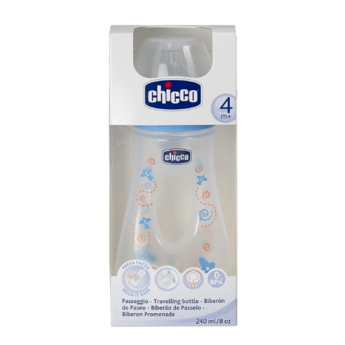Chicco Biberon Bien Être Promenade PP 240 ml Tétine Silicone Flux Rapide Décors Bleus 4 Mois+