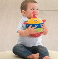 投げたり転がしたりすると楽しいメロディーや効果音が出る!小さい手でも、取っ手付きで持ちやすい!