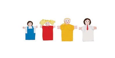 These Children's Factory White Hand Puppet Families are 4 colorful hand puppets with a Mom, Dad, Sis and Brother.