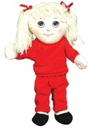 Machine washable, dryable 14" dolls in sweatsuits. Sweat suit colors may vary.