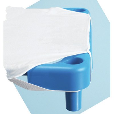 Made of cotton / poly blend with an elastic strap on each corner to slip over cot legs. Machine washable and dryable.